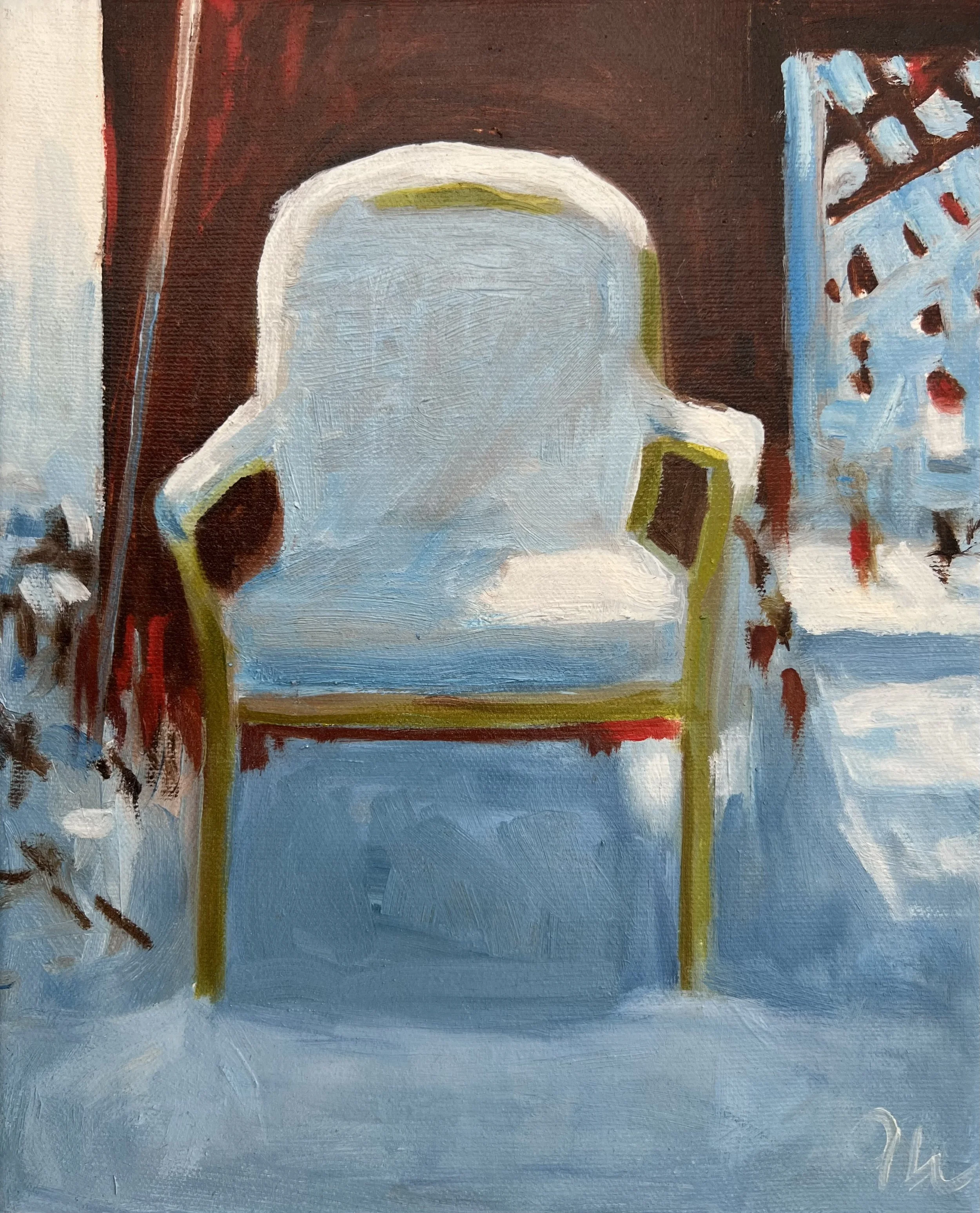 Green Chair in Snow Shadow, Oil on canvas. 11x9in., 2019