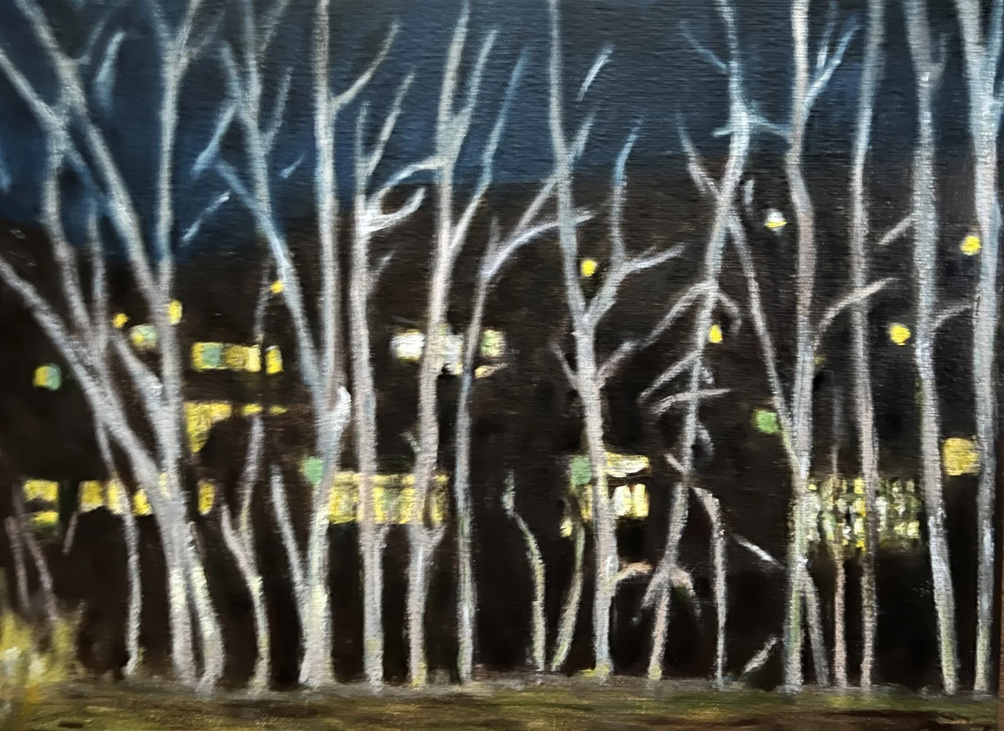 Every day I watch the oak and birch trees change. Change with the seasons, the weather, the time of day or night, but always, always changing. I try to catch those changes in paintings.