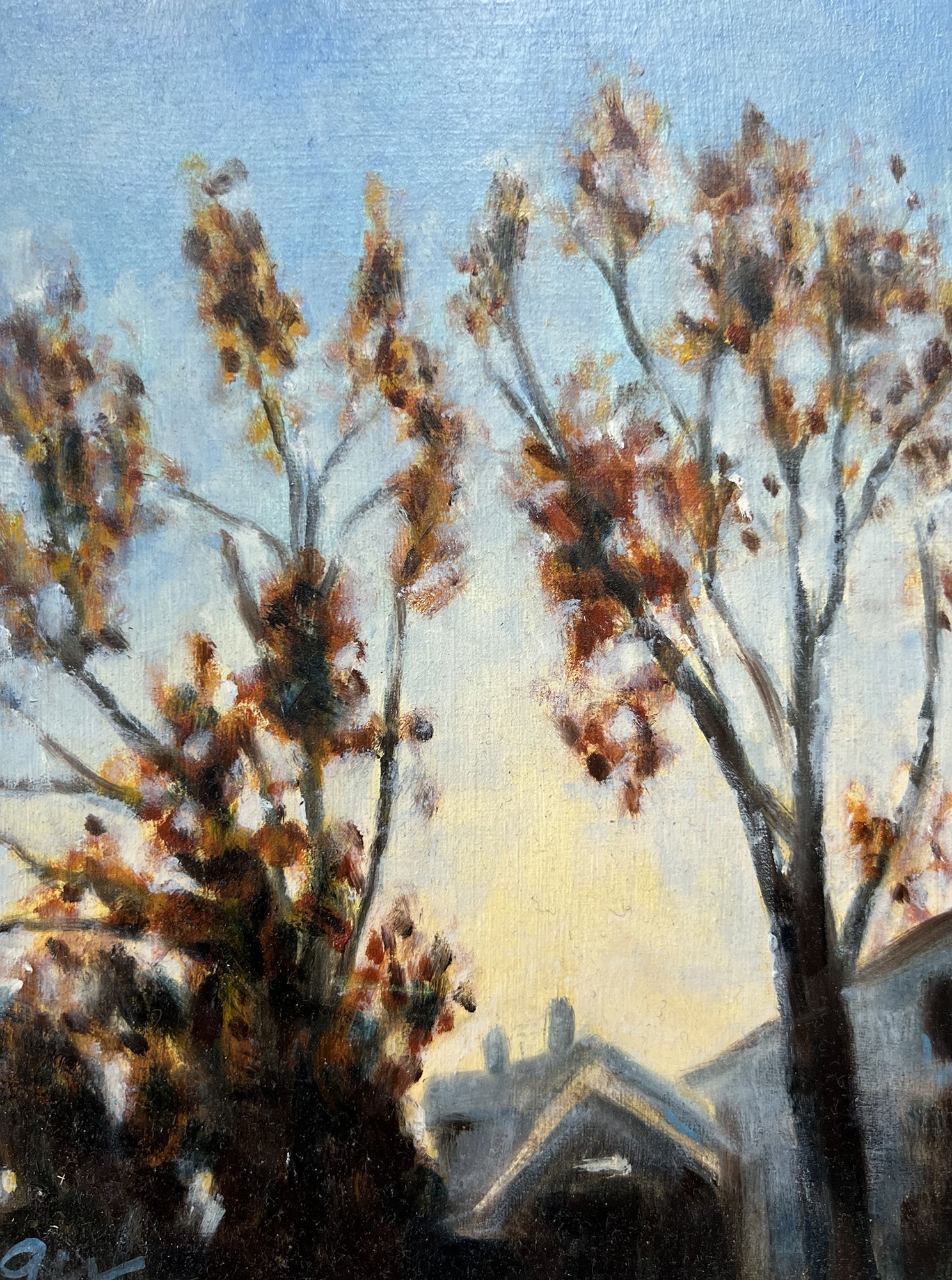 Sycamore Tree, Brooklyn, Oil on book cover. 8x5in., 2023